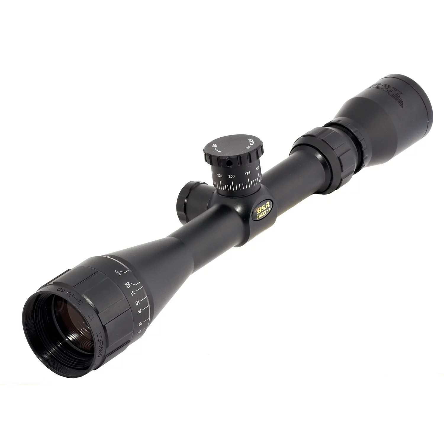 A swift model 687m variable power rifle telescopic sight with parallax compensation (the ring around the objective lens is used for making parallax adjustments) .